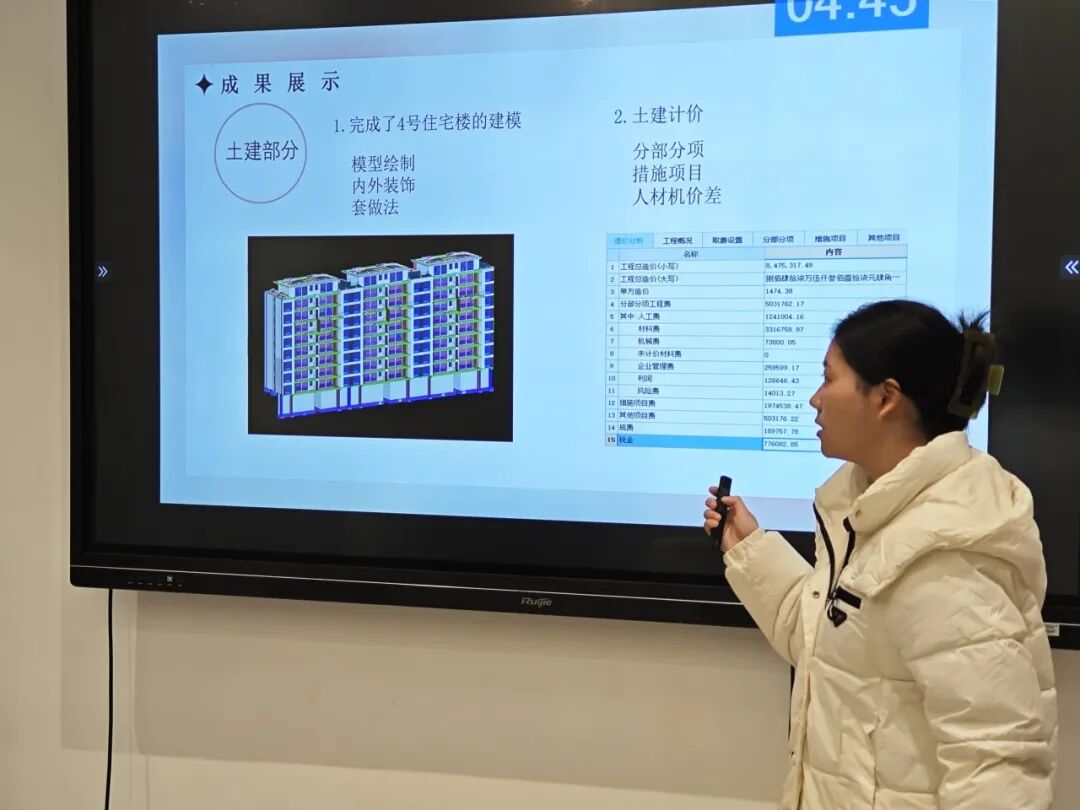 本学期,铂码班同学围绕永川区昕晖香缇F组团住宅工程展开研习与实操,运用广联达软件进行建模、提取工程量、编制招标清单和定额组价。同时,运用BIM软件进行施工现场布置规划,利用斑马软件编排施工进度计划,通过项目实操和经验总结,提升对所学知识的综合应用能力,为快速适应即将步入的工作岗位打下坚实的基础。