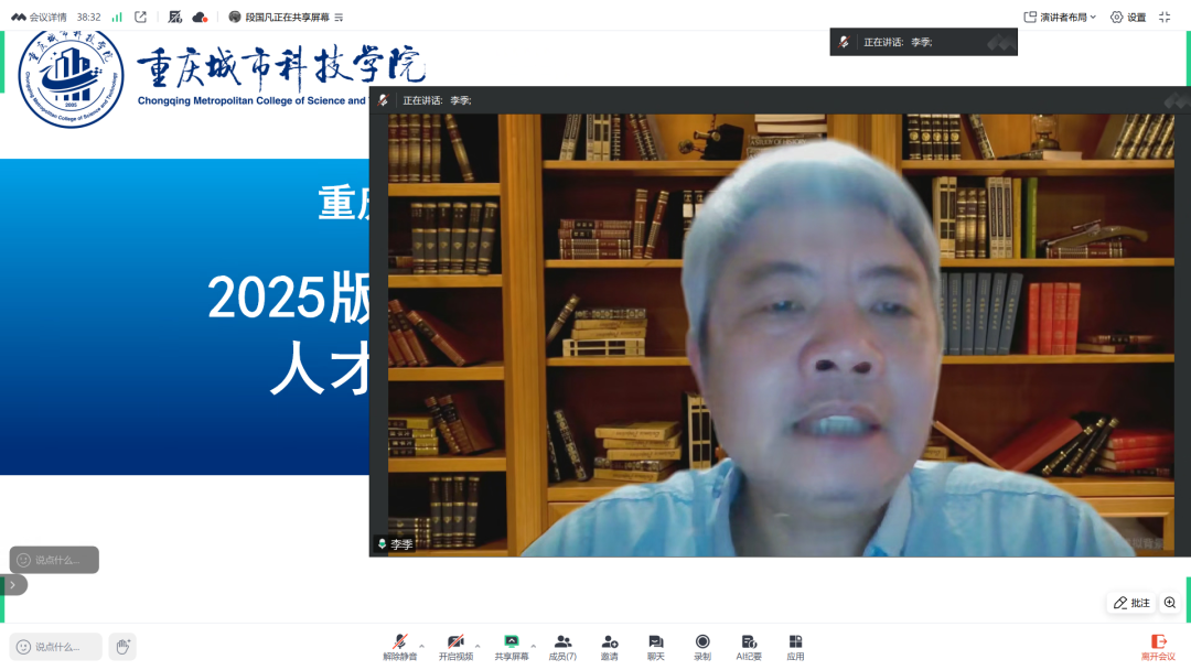 在评审会上,段老师首先就2025版人才培养方案的修订背景、指导思想与核心内容进行了系统汇报,重点阐释了为应对数字经济发展新格局,方案在强化数据思维、融通技术与管理、突出应用创新能力等方面所做的改革设计。与会专家在认真审阅和充分讨论后,一致认为该方案紧密对接了产业对高素质大数据人才的迫切需求,整体设计科学、特色鲜明,对其前瞻性与系统性给予了高度评价。同时,专家们结合各自的研究领域与行业实践经验,聚焦人才培养的关键环节、业界痛点与行业需求,提出了多项宝贵且具操作性的优化建议。