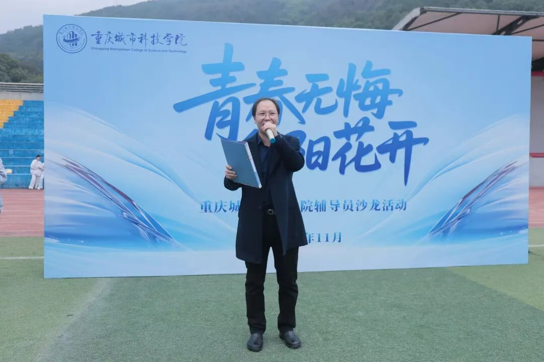 为进一步加强辅导员队伍建设,提升团队凝聚力,搭建辅导员跨界交流平台,11月12日下午,由重庆城市科技学院学生处主办、建筑管理学院学工承办的“青春无悔,向阳花开”全校辅导员沙龙活动在学校运动场顺利举行。学校党委副书记、副校长贾瑞,学生处处长马健,副处长吉春元及各二级学院党总支(副)书记出席本次活动。永川校区160余名辅导员及学工部门教师积极参与,活动由学生处处长马健主持。