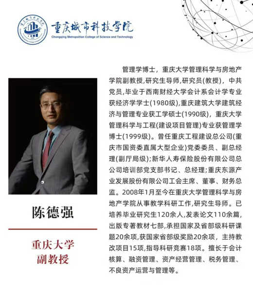11月27日中午,重庆城市科技学院鲁班智能建造产业学院开展专家进校园活动,在主教405智慧教室为建筑管理学院师生举办“数智时代的工程管理业财融合创新”专题讲座。重庆大学管理科学与房地产学院陈德强教授受邀主讲,逾200名师生踊跃参与,现场座无虚席、反响热烈。
