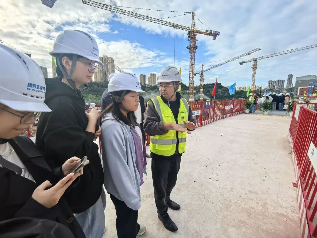 为亲身感知城市更新的脉搏,直观感受现代城市建设与民生工程的发展成就,重庆城市科技学院鲁班智能建造产业学院组织师生开展了一次富有教育意义的实地参观学习活动。11月26日,建筑管理学院“卓越・梦享”班的同学们在老师的带领下,走进大渡口区重点民生工程——“钓鱼嘴(西)安置房项目”施工现场。
