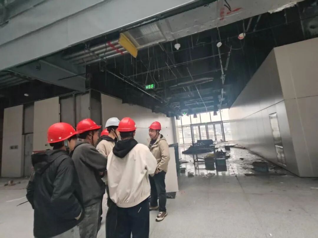 随后,在逐层调研二至四楼不同功能区域的过程中,师生聚焦施工工艺与现场管理细节——这些正是 BIM 大赛中施工流程模拟与项目管理的重要考点。针对动线优化、特殊结构处理、装饰节点建模等大赛常见问题,师生结合进度控制与质量管理要点,与工程师展开交叉研讨。通过现场实测、图纸比对与工序推演,学生们不仅深化了对建筑施工全过程的理解,更在观察分析、团队协作中提升了实际问题解决能力。