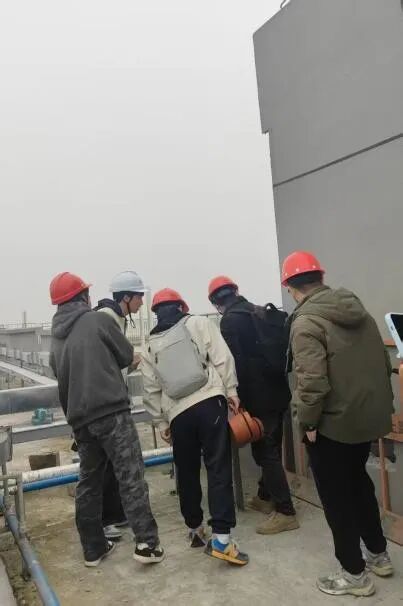 抵达现场后,中冶建工集团有限公司项目总经济师冉翔宇带领师生深入一楼核心区域。师生们手持图纸,围绕全国高校BIM毕业设计创新大赛建模中常见的空间尺度校准、墙体布局核对、功能分区适配等关键问题,与工程师展开点对点交流。工程师结合实体结构,系统讲解了管线预埋精度、构件衔接合理性、材料选用与成本控制等实务内容,帮助学生贯通“图纸—施工—管理”全流程认知,为高质量毕业设计积累真实案例。