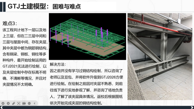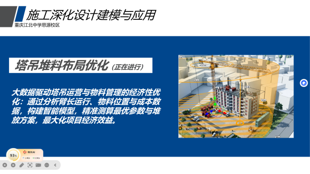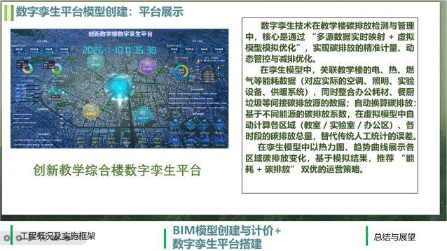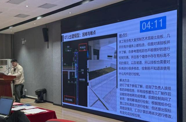 在成果展示环节,参赛成员充分展现了专业能力与实践创新精神。他们综合运用BIM技术、数据可视化、虚拟仿真等前沿技术,将项目的设计理念、施工流程与运营模式转化为直观的动态演示与静态模型,清晰体现出技术应用的优势与价值。针对项目推进中遇到的场地规划、成本控制、技术适配等重点难点问题,成员们不仅精准分析了问题根源,还展示了经过反复论证的解决方案,体现出严谨务实的态度与勇于创新的精神,全面展现了BIM实验班成员的专业素养。