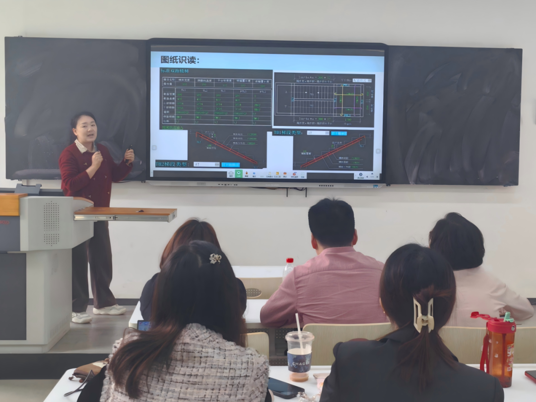 田华老师以《建筑工程BIM软件应用》为题,进行了BIM建模操作演示。她从软件界面基本操作切入,完整展示了建筑模型的创建过程,并重点剖析了建模中的常见问题处理方法。借助视频演示,田老师将抽象的软件功能转化为直观的教学步骤,使学生能够清晰掌握建模操作的每一环节。